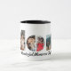 You have the ability to customise this mug with your own wonderful photos of you and your mum. It has the word mum with each letter having the ability to place at least two photos of you and your mum. It also has a phrase underneath the word Mum that states, "Our Wonderful Memories Together."
