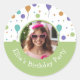 Custom Photo Name Balloon Confetti Birthday Party Classic Round Sticker