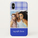 Custom Photo & Name Blue White Plaid 2 Case-Mate iPhone Case