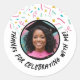 Custom Photo Name Confetti Graduation Thank You Classic Round Sticker