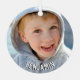 Create your own keepsake ornament with this stylish monogrammed design! This simple, stylish design features sports jersey inspired typography, with a retro block font. A circle-shaped template personalised with a first name initial, a favourite photo, and a name. A simple, stylish design, perfect for photos of kids, teenagers, family and pets. Available with a matte or glossy finish. Printed colours: dark green, red and white.