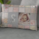 Custom Photo, Name & Monogram Patchwork Nursery Cushion in Pink and Gray.