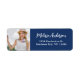Add the finishing touch to your graduation invitations, graduation announcements envelopes, mailings and stationary with these custom graduate photo return address labels.. Customise these photo address labels with your favourite grad photo, name and address. These simple photo return address labels are modern, elegant and trendy. COPYRIGHT © 2020 Judy Burrows, Black Dog Art - All Rights Reserved. Custom Photo Navy Blue Graduation Return Address label