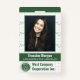 These photo ID badges have a forest-green-and-white theme. They include your employee's photo, name, and job title on the front, plus the name of the corporation / company and business logo. The back includes room for "if found" information (including address and phone number), plus space for an ID number and a bar code. The design also includes a grid pattern background and a line graph theme. Use the easy template to personalise, and then use the design tool to make more detailed changes (such as adjusting the size of the logo or barcode or deleting and rearranging elements). This eye-catching design is perfect for an office manager, administrative assistant, executive, or any business employee.