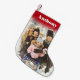 Turn a favourite photo into a special personalised Christmas stocking. This photo stocking is ready to be personalised with a name in bold white lettering against a festive red overlay at the top of the stocking.