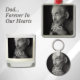 A custom and personalized father label with name and space for a photo. In loving memory, forever in our hearts.