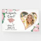 This elegant blush pink and white floral graduation banner features a heart shape photo template, a "Congrats, Grad!" saying, and a graduate's cap illustration. Personalise with the graduate's name, upload a custom photo via template, and type a year before ordering.
