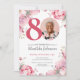 Custom Photo Pink Floral 80th Birthday Invitation. Immerse yourself in a delicate blend of watercolor hues, predominantly pink, and intricate floral details that form a whimsical tapestry of elegance. Elevate the personal touch with a custom photo, seamlessly weaving cherished memories into the invitation's design. This feminine masterpiece not only captures the essence of the celebrant's journey but also exudes an air of sophistication. Join us in honouring this milestone with an invitation that marries the gentle allure of pink florals, the fluidity of watercolor, and the unique charm of a custom touch, promising an unforgettable celebration of the extraordinary and the feminine.