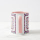 Custom Photo Pink Pattern Mother’s Day Mum Mummy Tea Coffee Mug. In pretty colours of muted pink, dark red, blue, and green; in a multicolour, maximalist, modern geometric pattern. For winter warmer drinks and cheerful hot chocolate on cosy winter nights in. Change the three photos to your own pictures to celebrate joyful family memories. Buy as a budget friendly festive keepsake drinkware gift for her, new mothers, wives or grandparents.