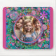 Custom Photo Pink Teal Fun Colourful Heart Floral Mouse Mat