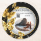 A modern save the date in a unique coaster format designed to accommodate your favourite engagement photo. The design features golden butterflies on a black background around the outside of the coaster. "Save the date" appears at the top of the coaster in black block and script lettering, with your names, date and QR code underneath. Personalise with your favourite horizontal photo. The QR code leads to your event web page where all details can be found and where your guests can RSVP instantly and make it easy for you to track who is coming and who is not. Customise with your names, picture and QR code.