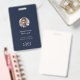 Enhance your corporate security with our Custom Photo QR Code Logo Employee ID Badge. Featuring a customisable employee photo, name, and title on the front, along with your logo, this badge exudes professionalism and functionality. The back offers space for a custom QR code, company name, and address, or personalised text, providing comprehensive identification for your staff. With a rich navy blue background and classic grey typography, this badge offers a modern, minimalist design suitable for any business environment. Elevate your corporate branding and security measures with our customisable ID badge solution.