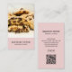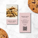 Promote your sweet business in style with this customisable pink bakery business card, perfect for cookie makers, home bakers, pastry chefs, and boutique bakeries. Personalise it with your own photo to showcase your delicious creations, add your unique QR code for easy access to your website or menu, and update the replaceable social media icons to match your brand. A modern and professional way to connect with customers and grow your bakery business.