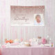 Welcome guests with this chic, glamourous 90th birthday party photo banner, featuring a sparkly rose gold faux glitter drip border and rose gold ombre background. Easily replace the sample image with a photo of the guest of honour. Personalise it with her name in rose handwriting script, with the birthday and date below in rose sans serif font.