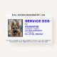 Service Dog - Easily identify your dog as a working service dog, while keeping your dog focused and cut down on distractions while working with one of these k9 service dog id badges. Although not required, a Service Dog ID badge gives you and your service dog peace of mind and ease of travel without hassles and questions when seeking public access. COPYRIGHT © 2020 Judy Burrows, Black Dog Art - All Rights Reserved. Custom Photo Service Dog ID Badge
