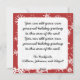 A happy snowman with a carrot nose and red stripe scarf, lots of snowflakes on a festive red background, an area you can add a photo, and areas to add your personal holiday message and name on Snowman holiday greeting cards all your friends are sure to love!