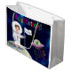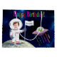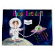 Custom birthday gift bag for kids, upload their photo and name to the fun space graphic with a friendly alien trailing party streamers in celebration.