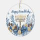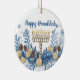 Introducing the Personalised Hanukkah Menorah Ornament! This round ceramic ornament is perfect for adding a festive touch to your Hanukkah celebrations. The front features a beautifully illustrated menorah with lit candles, surrounded by blue and white foliage, dreidels, and Stars of David. The text “Happy Hanukkah” is prominently displayed at the top and can be customised to your liking, making it a unique and thoughtful gift.