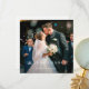 This simply chic custom photo wedding thank you card template features an elegant, minimalist, modern design. The default shape is standard sharp corners, but rounded corners also work wonderfully with this design, so try both looks and see which one grabs you! The front features your favourite photo, first names and a 'LOVE and THANKS' message conveyed with a striking blend of two distinct fonts, with 'and' in a light, flowing script between the rest of the other two words, which are in upper case with a bold, crisp formal look.The 'LOVE and THANKS' part of the design can't be altered. When you edit the front to show your own names, you might change the format to show your first names with last name, or 'Mr. and Mrs......' or whatever suits your style. On the back, we've set the background as transparent, so that the colour of the paper will simply serve as the base colour. You can choose a colour for the background, if you prefer. The default text colour on the back is dark grey, but you can change this if you prefer another colour. We've put some sample text on the back for you to replace with your own message as you see fit, but please don't feel restricted by this. If you prefer delete our sample text entirely and keep the back totally blank so that you can write a handwritten note on each card instead, you can do that. Or you might want to replace our text with your own message of gratitude and your own closing and then hand sign your names when you receive the cards. In any case, please do remember to remove all of the sample/placeholder text on both sides as well as our sample photo! We've chosen matte rather than semi-gloss as the default paper choice, as it is well suited to writing your own message on and won't smudge. You can of course change this to semi-gloss, or you might consider upgrading to something with a texture such as zazzle's 'Laid' or 'Felt White', which can add a feeling of warmth and depth. We hope you'll enjoy experimenting with various aspects of this stylish modern wedding thank you card template's appearance and make it uniquely yours with the intuitive design tools, your favourite photo and your inspiration!