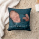 Custom Photo Welcome Script Overlay Baby Keepsake Throw Pillow is a modern and cool way to remember when the new addition to your family arrived. It is suitable for both girls and boys. The front has a large photo with the welcome text in the white script and the baby name and birth stats template. The back is a solid colour