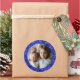 This custom sticker label features a sample photograph in the centre which you can replace with a picture of your own family or other custom image. A faux, sparkly looking chunky glitter blue frame encircles the photograph.