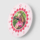 Clock design with personalised option of your own photograph inside peachy colour hearts circle.