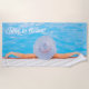 Custom photograph woman relaxing in swimming pool, beach towel