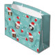 Customise this fun big gift bag featuring stylish cute winter scene with Christmas Santa hats, mittens, and scarfs surrounded with snowflakes. Designed for you to replace template photos with photos of your family members. It will appear as they are all wearing Santa's Christmas hats. To position your photos right click on the Customise it! button under the product image and then you'll be able to resize and move around your custom photo faces to set them perfectly under a hat.
