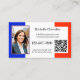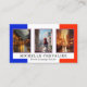 Business card featuring your custom photos with the French flag as background on the front. On the back is space for another photo and also a QR code template. Beautiful for a teacher of the French language or customisable for for instance a travel agency offering trips to France.
