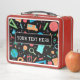 Elevate lunchtime with our customisable metal lunch box! Featuring a playful assortment of scattered school supplies, including a school bus, basketball, and globe, this bold design offers the perfect space to add a child or teacher's name.