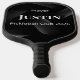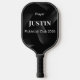 Sleek and modern, this customizable pickleball paddle features a bold black background with clean white text for a timeless, high-contrast look. Personalize it with your name, initials, or team name to create a paddle that stands out on the court. Designed for both style and performance, it makes a perfect gift for pickleball players of all skill levels. Great for birthdays, holidays, or everyday play, this paddle combines minimal design with personal flair.