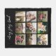Custom photo blanket with your personalised pictures in a grid collage. Add your own text in a modern script calligraphy style font