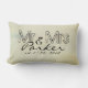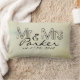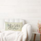 A custom pillow Mr and Mrs has personalised text to add your own name and date on vintage style background in ecru for wedding gift or unique home decor.