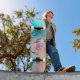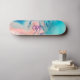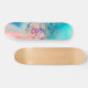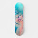 bright pink and blue alcohol ink watercolour background, custom name marble ink swirl skateboard