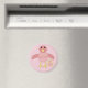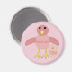 This fun magnet features a cute cartoon of a pink chick. The chick has a pale pink belly and darker pink wings and head with a yellow beak and feet. Next to the chick is a small egg.