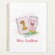This first grade teacher planner keeps a teacher organised. Pattern has a pink polka dot notebook, heart coffee, ruler, pen and pencil. This pink polka dot notebook design can be found on other items in my shop, PageCreativeDesigns.