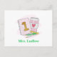 This first grade teacher postcard is perfect for writing a note to your students. Pattern has a pink polka dot notebook, heart coffee, ruler, pen and pencil. This pink polka dot notebook design can be found on other items in my shop, PageCreativeDesigns.