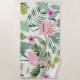 Custom Pink Flamingo Green Leaf Bachelorette Beach Towel