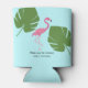 Custom Pink Flamingo Tropical Destination Wedding Can Cooler