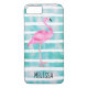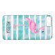 Custom Pink Flamingo Turquoise Blue Stripes Case-Mate iPhone Case