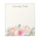 Beautiful blush pink watercolor flowers and sage green leaves on cream-coloured custom notepad with your name personalised in an elegant script font.