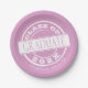 This modern pink graduate paper plate features a white "class of" wording inside a circle that looks like a stamp. Simply enter the graduate’s name and graduation year.