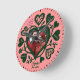This unique wall clock is special because it transforms a standard timepiece into a cherished romantic keepsake by featuring your favourite couple's photo at the heart of the design. Set against a soft pink background with deep forest green decorative hearts and customisable names, it tells a distinctive story of love and growth. It is a perfect gift for anniversaries, weddings, or Valentine's Day, offering a deeply personal and artistic touch to any living space.