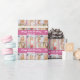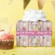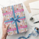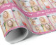 Customize your own cute pink birthday wrapping paper with a cute 5 photo collage. Add the person's name and year in white script above the five photographs for pretty personalized gifts.