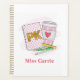 This pre kindergarten teacher planner keeps lesson plans in one place. Pattern has a pink polka dot notebook, heart coffee, ruler, pen and pencil. This pink polka dot notebook design can be found on other items in my shop, PageCreativeDesigns.