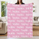 Make your own blanket with a custom name in modern typography repeating pattern on pink color background. A great gift idea for family and friends or personalized home decor.