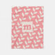 Custom Pink Retro Leaf Pattern Monogram Fleece Blanket