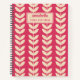 Custom Pink Retro Vibe Leaf Pattern Monogram Notebook