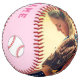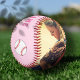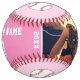 Custom Pink Team Player Name Number Photo Softball. Personalise it with player's photo, team name, player's name, player's number and year. Great keepsake to remember your favourite sport. This personalised softball is a perfect gift for softball player, teammates, coaches, friends and family