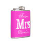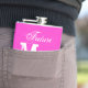 Custom pink wedding drink flask for bride to be with elegant vintage script text. Customisable pink and white colour. Cool wedding / bachelorette party gift idea for bride and bridesmaids. Personalise it. Alcohol / Drinking present. Custom background colour.